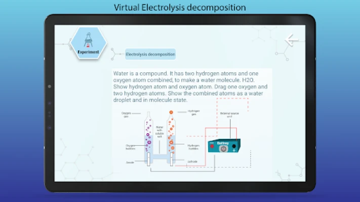 Experiment – Practice a virtual electrolysis decomposition experiment to reinforce learning.