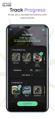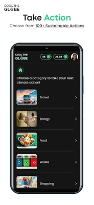 The app offers hundreds of simple actions to reduce your carbon footprint and calculates the emissions you avoided with each one.