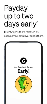 — Get paid up to 2 days early²: Receive your direct deposit as soon as your employer sends it.