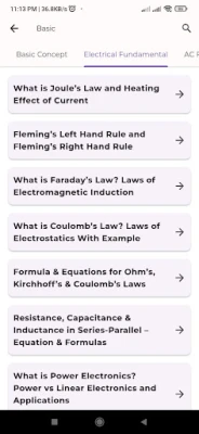 1. Electrical content. 2. Electronics content. 3. House wiring content. 4. Control System 5. Automation. 6. Science topics. 7. 150+ Offline Theory Content 8. Online Electrical Calculator 9. Electrical Symbols 10. Online Theory Content 11. Online Circuit Simulation 12. Theme Settings: Light, Dark, System 13. Keep Screen On