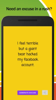 Life happens, and sometimes you just need a clever reason to bail on those not-so-exciting plans. Let Excuse Me generate the wackiest and most creative excuses that'll leave your friends laughing while you enjoy your newfound freedom.