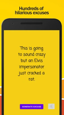 Tap into the unexpected with our Random Excuse Roulette! Swipe through a variety of hilarious excuses and find the one that perfectly matches your situation. It's like having a comedy club in your pocket, ready to bail you out!