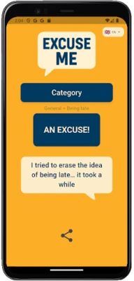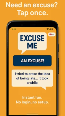 ExcuseMe is a fun excuse generator app available in 10 languages. Perfect for skipping meetings, avoiding awkward moments, or just laughing out loud.