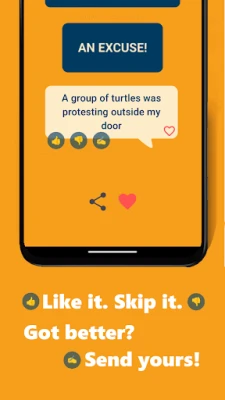 ✔️ Share your favorite excuses with friends