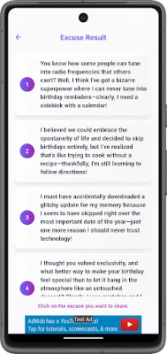 Just type "30 minutes late, very serious," and let our AI do the rest! It instantly crafts the most plausible excuse tailored to any time, place, or occasion.