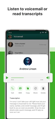 Listen to your work voice messages in the Phone.com app. If you have voicemail transcription from Phone.com, you’ll receive those messages too.
