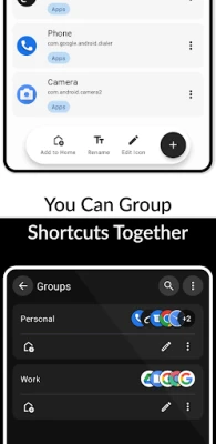 Quikshort provides group feature to group your shortcuts together and access all at a time with single shortcut.