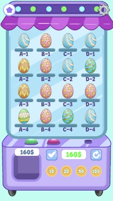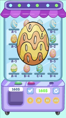 Drop a coin, twist the handle, and discover what's inside! Enjoy the thrill of opening colorful surprise eggs, just like in real life. Each egg contains a fun toy, cute character, or shiny collectible that will keep you coming back for more!