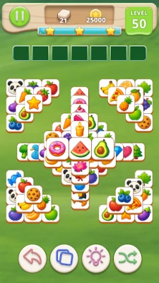 Because there is only space to accommodate 7 tiles at a time, you must be careful as to not tap on tiles at random. You should only tap on a tile, if you are sure that you can match 3 tiles with the same image. Otherwise, you’ll fill the board with a bunch of random tiles and you won’t be able to add more tiles once the space is filled.