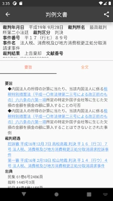 PC版の判例及び法令に付加されている目次機能は、当アプリ版でも利用することができます。マルチタッチスクリーン上で目次を利用できるため、より直感的に必要な情報にアクセスすることができます。