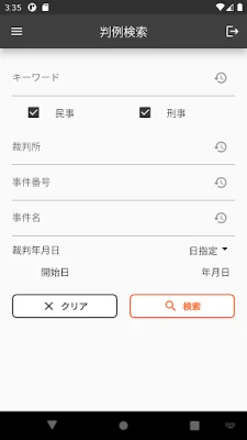 ・キーワード、裁判所、裁判年月日、事件番号、事件名による指定ができます。