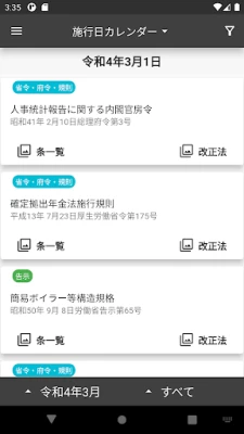 ・検索結果は、法令名の一致率順の他、法分野順、公布日・法案提出日などに並べ替えることができます。